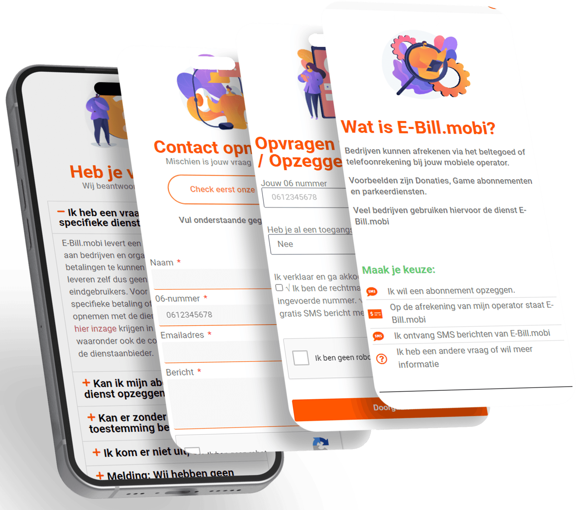 E-bill.mobi is een sms payment provider die een website nodig had waar klanten contact konden opnemen indien er vragen waren over deze transacties.